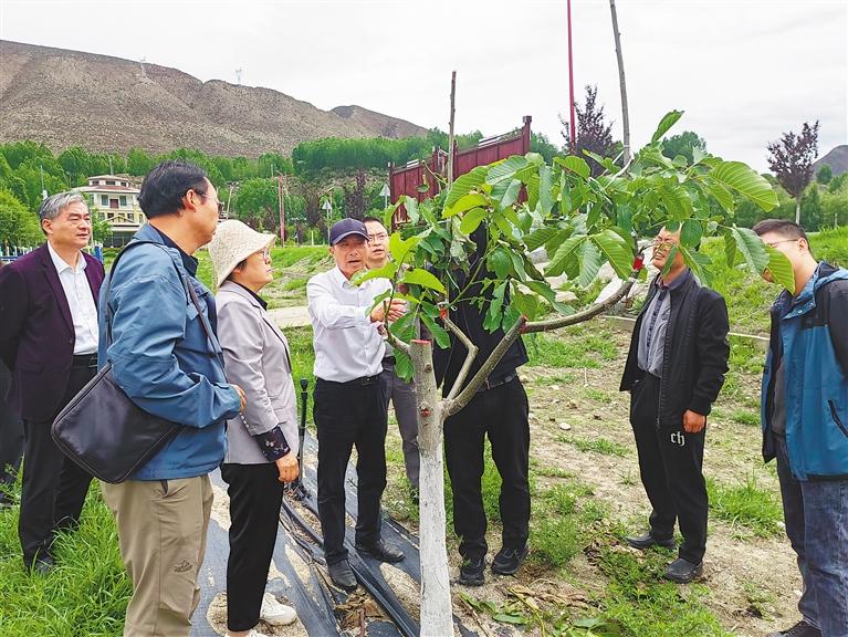 “高原核桃產(chǎn)業(yè)技術(shù)研究,涉及許多核心指標(biāo),這些指標(biāo)在學(xué)術(shù)上具有什么樣的水平,在國內(nèi)處于什么位置,這些都是非常專業(yè)的問題。因此,需要行業(yè)內(nèi)的專家做出相關(guān)方面的鑒定,為我們項(xiàng)目的驗(yàn)收與結(jié)題提供支撐和充分的依據(jù)?!遍L(zhǎng)江大學(xué)援藏工作隊(duì)隊(duì)長(zhǎng)許曉宏向記者介紹。此次鑒定內(nèi)容包括平臺(tái)建設(shè)與技術(shù)研究?jī)煞矫?,具體有實(shí)驗(yàn)室面積、選育圃、采穗圃、育苗圃、生態(tài)高效栽培示范園建設(shè)總面積、優(yōu)株或品系的篩選推廣和示范、優(yōu)株嫁接苗數(shù)量、采穗圃年生產(chǎn)接芽能力、核桃生產(chǎn)技術(shù)人才培養(yǎng)等。
