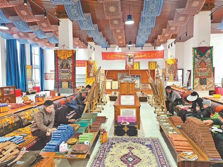 在政府持續(xù)的政策扶持、資源對(duì)接和市場(chǎng)推廣助力下,合作社發(fā)展態(tài)勢(shì)良好,銷售渠道變寬,有效激活了桑珠榮村的發(fā)展?jié)撃?。目前,合作社共有成員12人,其中6名是唐卡畫師,6名專職制作藏香。通過唐卡創(chuàng)作與藏香加工,合作社已實(shí)現(xiàn)盈利27萬余元,不僅直接解決了12名村民的穩(wěn)定就業(yè)問題,還為桑珠榮村贏得了“唐卡與藏香傳承第一村”的美譽(yù),成為當(dāng)?shù)匚幕x能鄉(xiāng)村振興的典范。