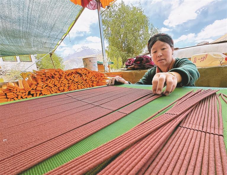 圖為工人在晾曬制作好的藏香。記者 白瑪澤旺 次仁平措 攝影報(bào)道