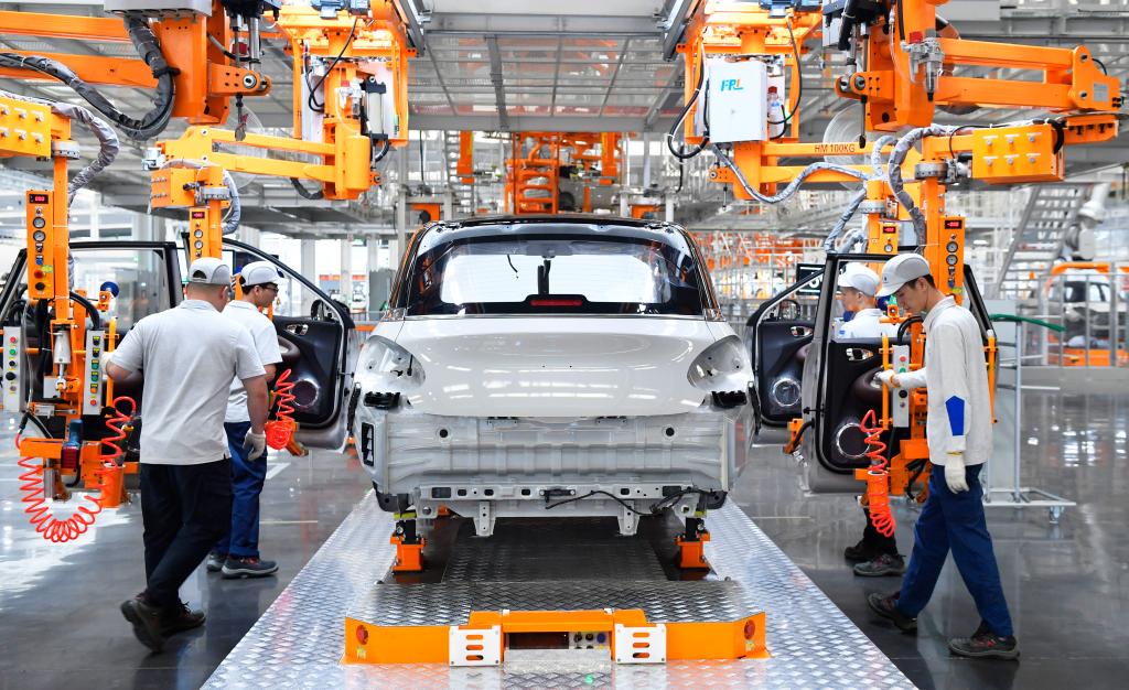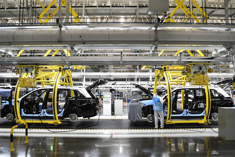 這是在位于重慶市兩江新區(qū)的賽力斯汽車(chē)超級(jí)工廠智能化生產(chǎn)作業(yè)現(xiàn)場(chǎng)(2024年6月7日攝)。新華社記者 王全超 攝