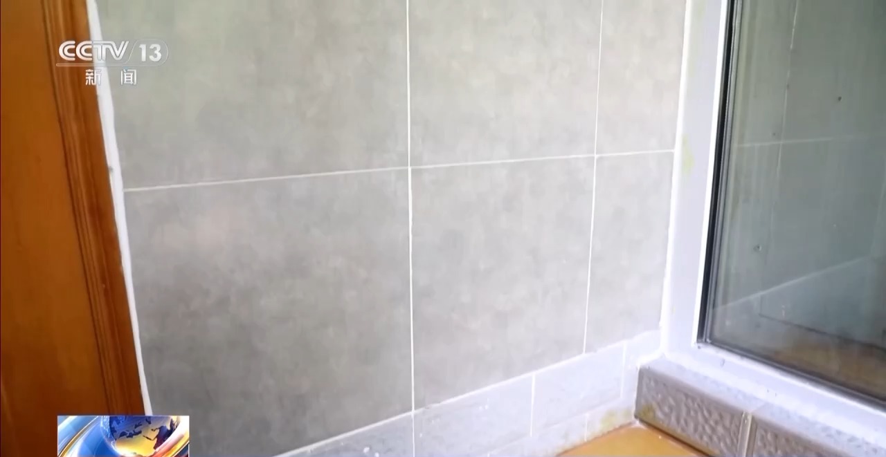 經過現場查看,瓷磚掉落的部位因為年久失修已經空鼓了,隨時可能全部掉下來。趙靜超決定讓工人把陽臺的瓷磚全部敲掉重新貼。第二天一早記者再次來到聞阿姨家時,這面墻已經煥然一新。