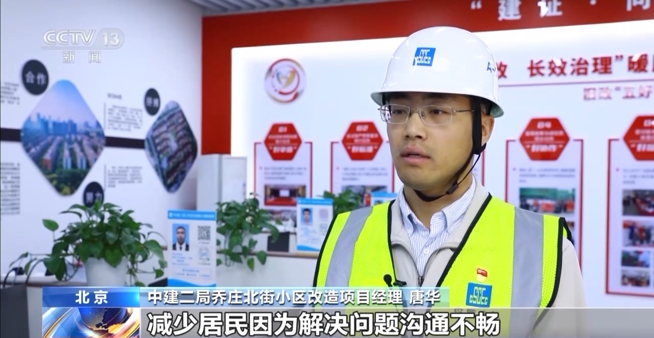 中建二局喬莊北街小區(qū)改造項目經理 唐華:借鑒物業(yè)式的管理,想出來的這種施工樓棟管家服務模式,減少居民因為解決問題溝通不暢導致的一些投訴。