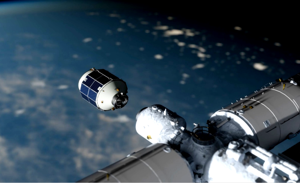 輕舟貨運飛船與中國空間站對接示意圖。(中國科學(xué)院微小衛(wèi)星創(chuàng)新研究院供圖)