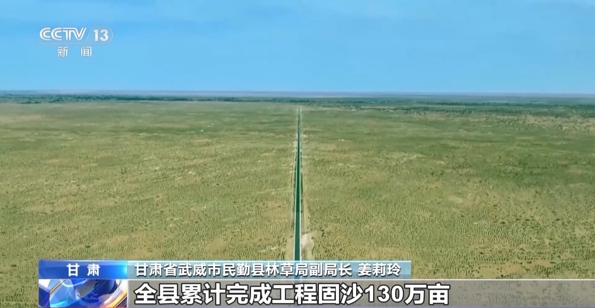 甘肅省武威市民勤縣林草局副局長(zhǎng) 姜莉玲:截至目前,全縣累計(jì)完成工程固沙130萬畝,封沙育林草325萬畝,人工造林保存面積261萬畝。