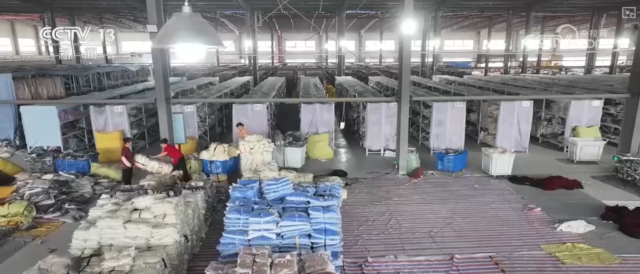 賣服裝能有多忙?記者在天門當(dāng)?shù)剡@家服裝電商龍頭企業(yè)的倉(cāng)庫(kù)里看到,工人們正在不停分揀即將要發(fā)出的包裹。貨車在門外排隊(duì)等候,每裝滿一輛就要立刻發(fā)車一輛。