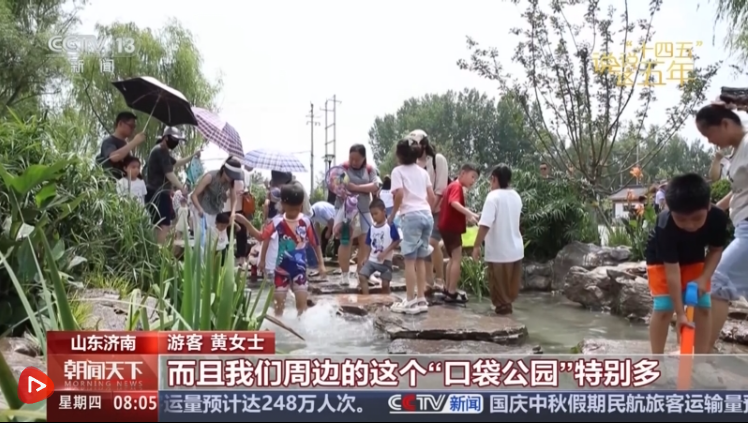 游客黃女士說(shuō),山更青了、水更美了,祖國(guó)處處的山水都很美。周邊的口袋公園特別多,方便他們鍛煉身體對(duì)老年人很有幫助。
