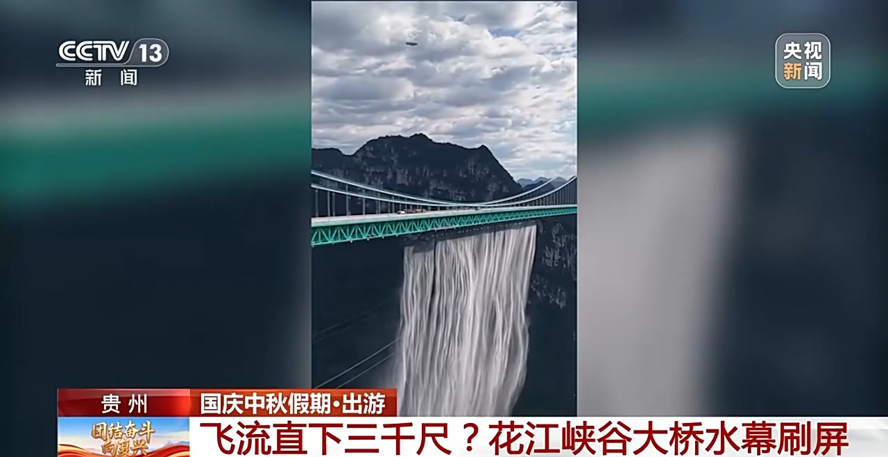 就在前兩天,貴州花江峽谷大橋建成通車。大橋調(diào)試水幕的現(xiàn)場(chǎng)畫面,如“飛流直下三千尺”的瀑布,在社交媒體上刷了屏。今年國(guó)慶中秋假期,這座“橫豎都第一”的大橋吸引了很多游客慕名而來(lái)。這一路的游玩有什么好推薦?