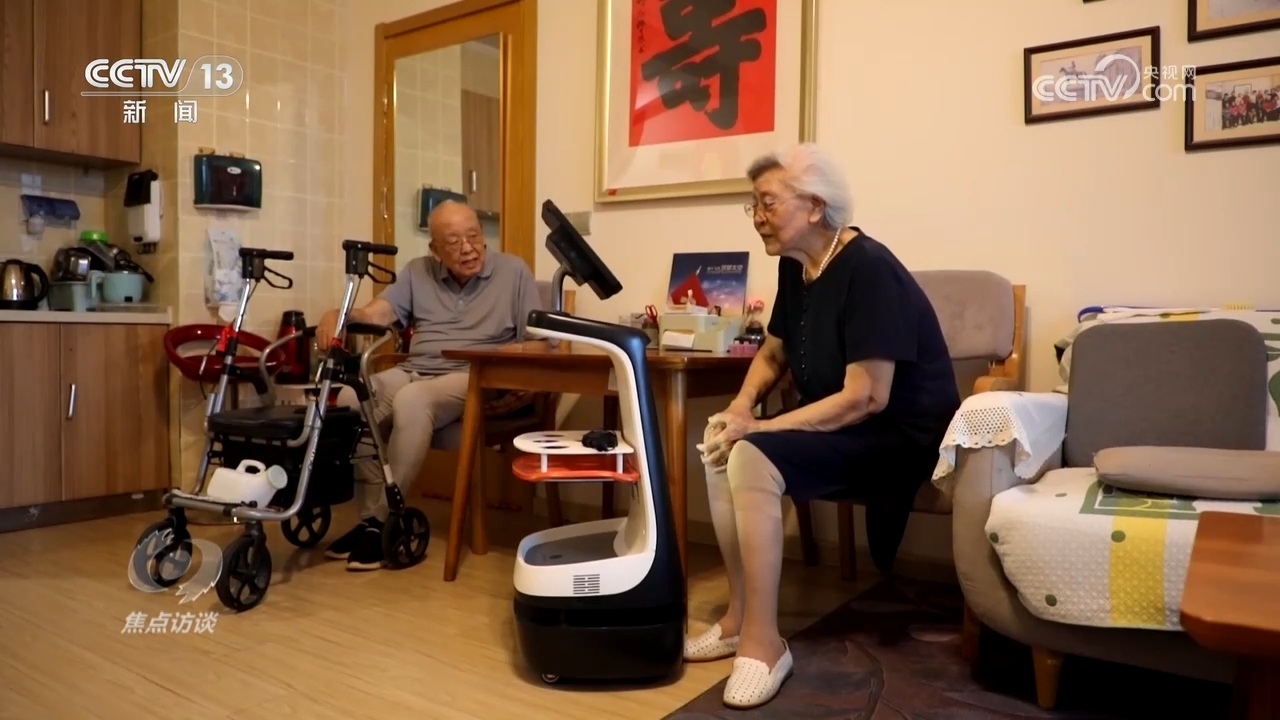 在深圳一家養(yǎng)老院,健康檢測(cè)機(jī)器人接到指令,就自己導(dǎo)航到老人身邊,提醒她測(cè)血壓。