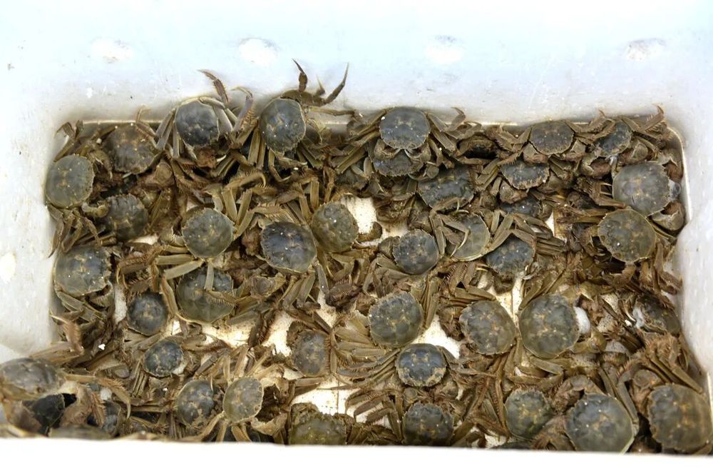 據(jù)介紹,遼寧毛蟹肉質鮮嫩細膩,喜低溫環(huán)境,夏季生長較慢,至7月僅30克-40克,進入秋季后迅速增重至150克。判斷螃蟹是否成熟,可觀察其腿部:腿長且硬實即表示已長成。