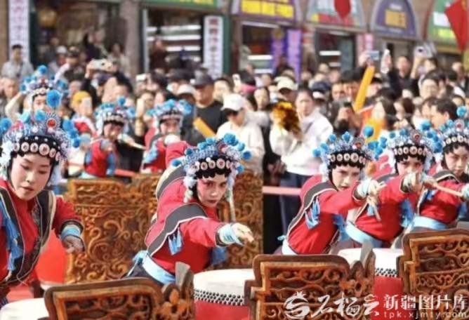 10月1日12時(shí),新疆國(guó)際大巴扎步行街化身為一片沸騰的海洋,來(lái)自陜西神木的非物質(zhì)文化遺產(chǎn)代表性項(xiàng)目——“忠勇楊家鼓”在此激情上演,為八方來(lái)客獻(xiàn)上一場(chǎng)氣勢(shì)磅礴的傳統(tǒng)民俗盛宴。