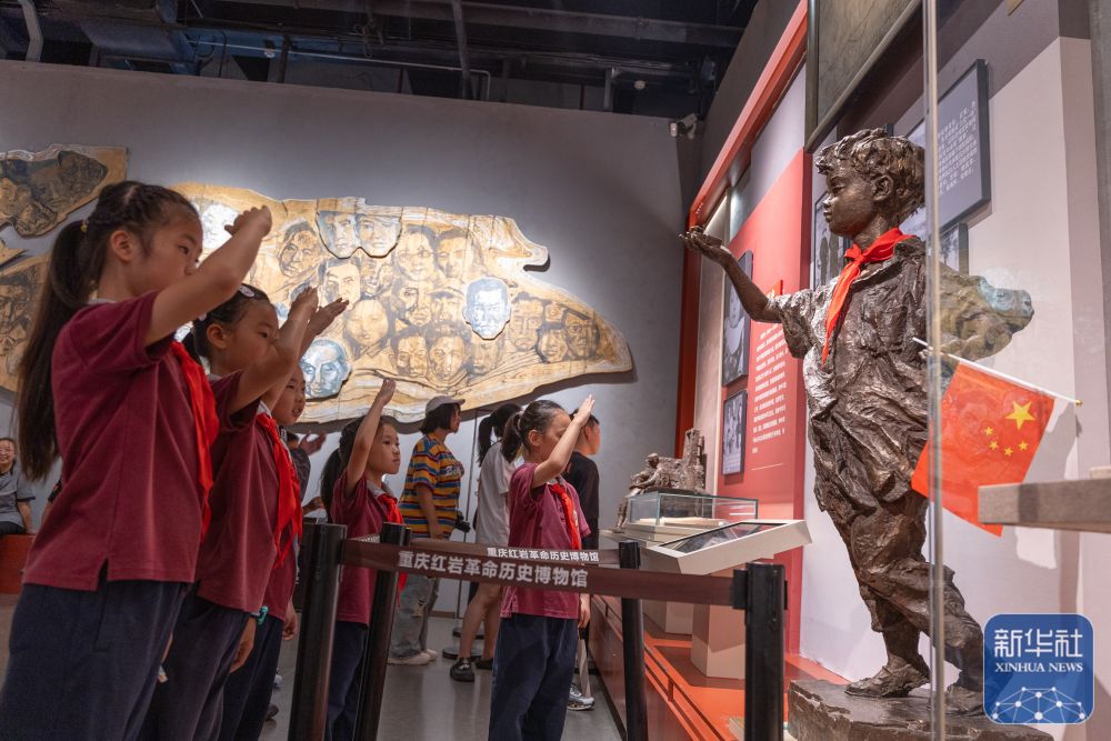 ↑ 10月6日,來自渝北巴蜀小學(xué)二年級九班的同學(xué)們在重慶歌樂山革命紀念館參觀。新華社記者 陳誠 攝