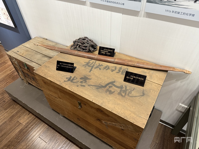 展柜中兩塊陳舊的紅色磚塊,銘刻著“史上最牛燒磚工”的故事?!爱敃r,為了能盡快恢復科研和教學工作,中國科大師生親手燒制了建造化學樓的紅磚,其中很多老師、學生如今已經(jīng)成長為教授甚至院士,所以我們也經(jīng)常戲稱這群燒磚工為‘史上最牛燒磚工’?!蓖趺A介紹。