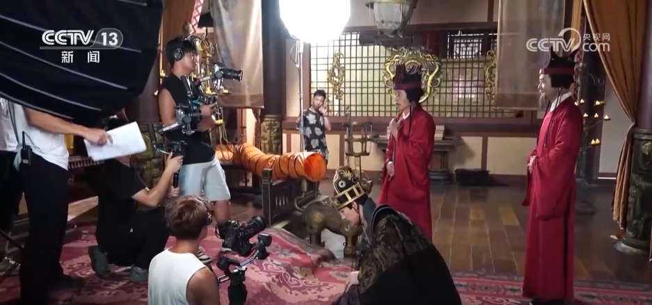 這幾天,位于浙江金華的橫店影視城最高氣溫超過35℃。各大片場里,短劇拍攝更是一片火熱。記者在橫店影視城華夏文化園景區(qū)內(nèi)看見,有兩部短劇正同時(shí)拍攝,劇組各占一塊地方,相隔幾百米左右,燈光、搖臂......各種設(shè)備應(yīng)有盡有,工作人員默契配合,拍攝井然有序。