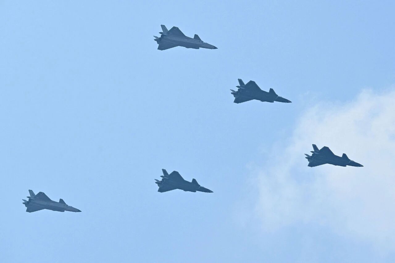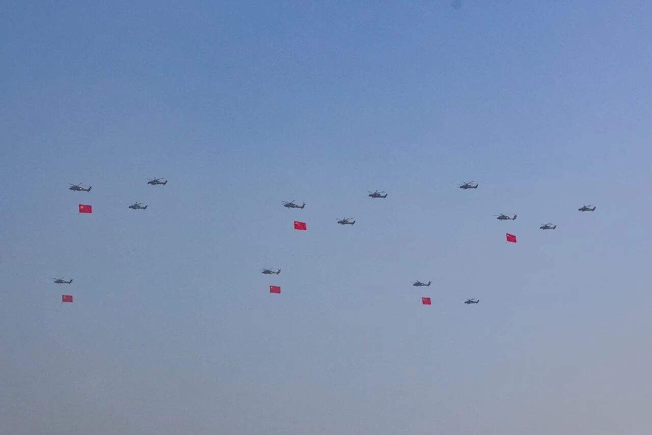 8個(gè)空中梯隊(duì)從遠(yuǎn)方呼嘯而來(lái)