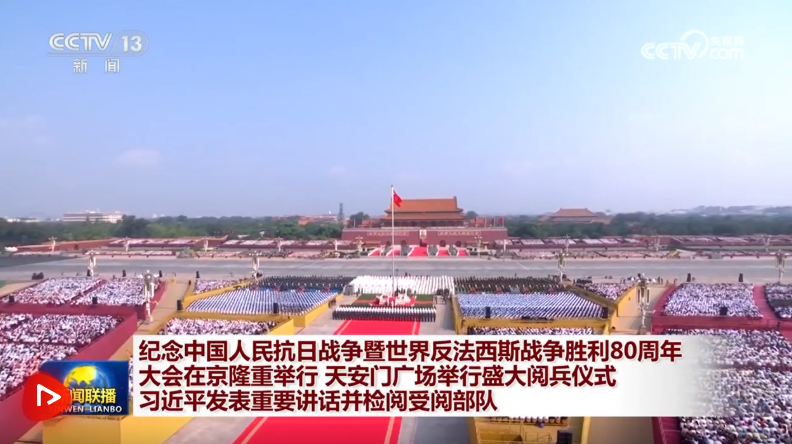 銘記偉大歷史勝利,凝聚正義和平力量。9月3日上午,紀(jì)念中國(guó)人民抗日戰(zhàn)爭(zhēng)暨世界反法西斯戰(zhàn)爭(zhēng)勝利80周年大會(huì)在北京天安門(mén)廣場(chǎng)隆重舉行,以盛大閱兵儀式,同世界人民一道紀(jì)念這個(gè)偉大的日子,共同開(kāi)創(chuàng)更加光明的未來(lái)。中共中央總書(shū)記、國(guó)家主席、中央軍委主席習(xí)近平發(fā)表重要講話并檢閱受閱部隊(duì)。