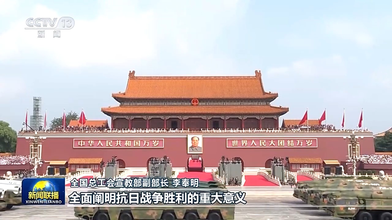 全國總工會宣教部副部長 李奉明:習近平總書記的重要講話,從全民族、全人類的高度,全面闡明抗日戰(zhàn)爭勝利的重大意義。莊嚴宣示中國人民維護世界和平與發(fā)展的堅定立場,我們深刻認識到中國共產(chǎn)黨的中流砥柱作用是抗日戰(zhàn)爭勝利的關(guān)鍵。
