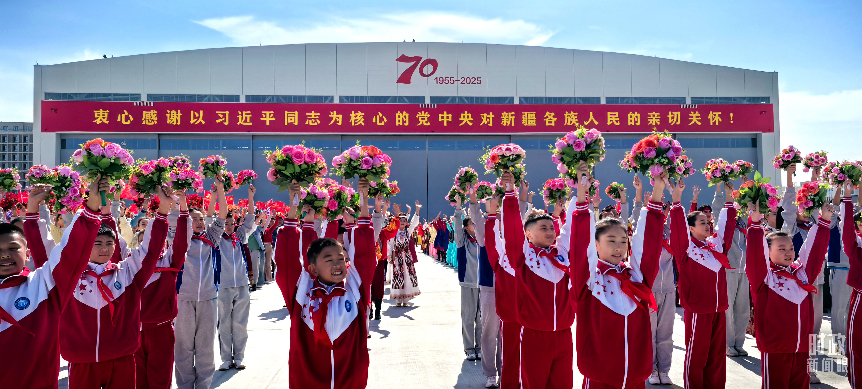 金秋時(shí)節(jié),晴空萬(wàn)里。新疆各族群眾熱情迎接習(xí)近平總書記和中央代表團(tuán)的到來(lái)。