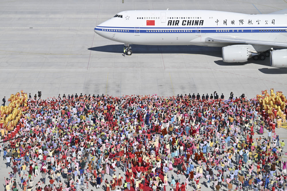23日14時(shí)20分許,習(xí)近平總書(shū)記乘坐的專(zhuān)機(jī)在天山國(guó)際機(jī)場(chǎng)降落,等候在停機(jī)坪的新疆各族各界群眾熱烈歡呼。習(xí)近平總書(shū)記走出艙門(mén),向歡迎群眾揮手致意。習(xí)近平總書(shū)記走下舷梯時(shí),少先隊(duì)員獻(xiàn)上鮮花。
