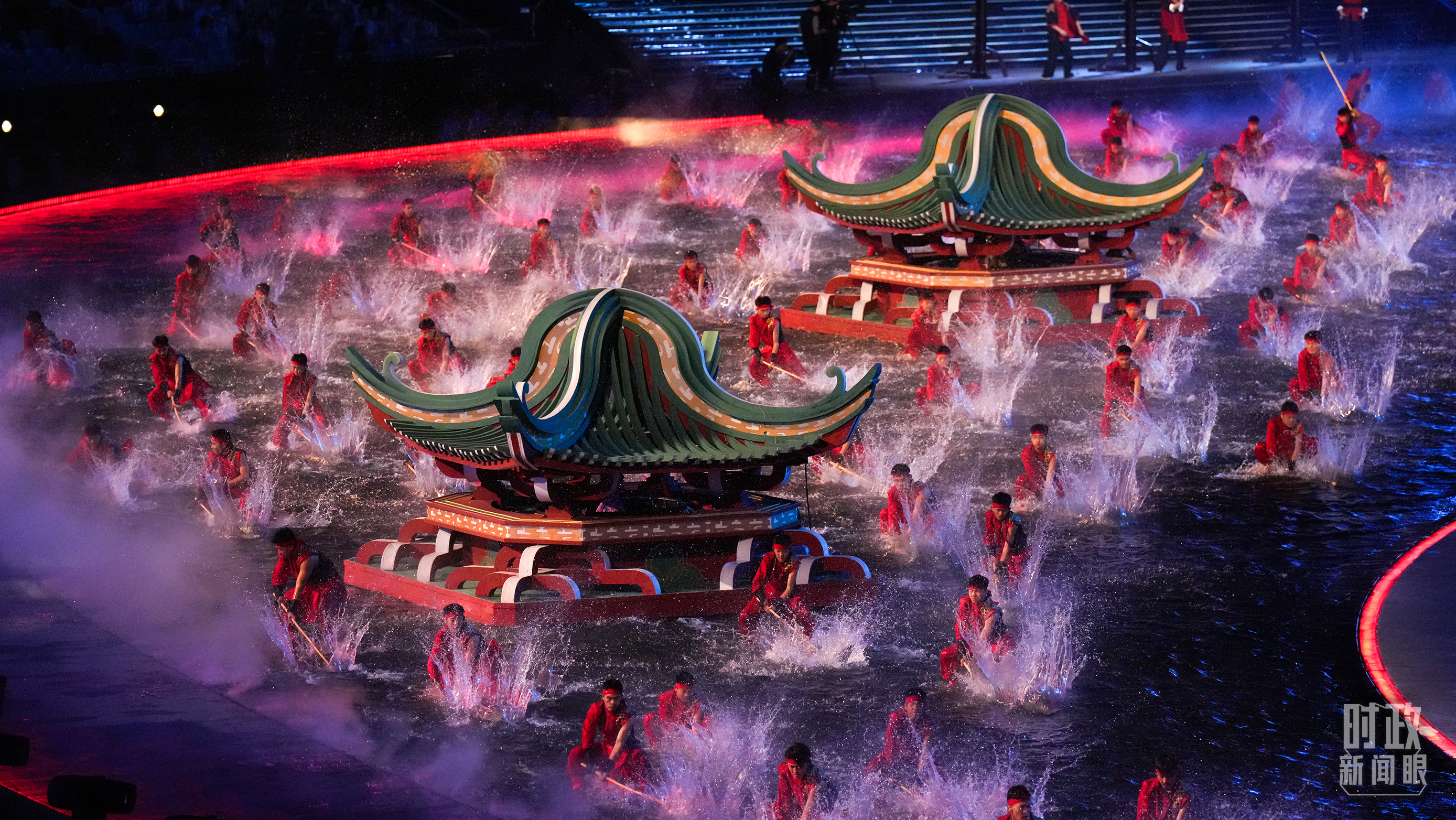 廣東奧體中心內(nèi),一幅運(yùn)用人工智能技術(shù)、展現(xiàn)嶺南瑰麗風(fēng)光的“長卷”徐徐鋪展。開幕式包括入場儀式、奏唱國歌、參賽運(yùn)動(dòng)員等代表宣誓、文體展演、主火炬點(diǎn)燃儀式等多個(gè)環(huán)節(jié)。其中,展現(xiàn)粵港澳三地?cái)y手合辦的“同心”“融合”等元素,成為這場開幕式的一大特點(diǎn)。