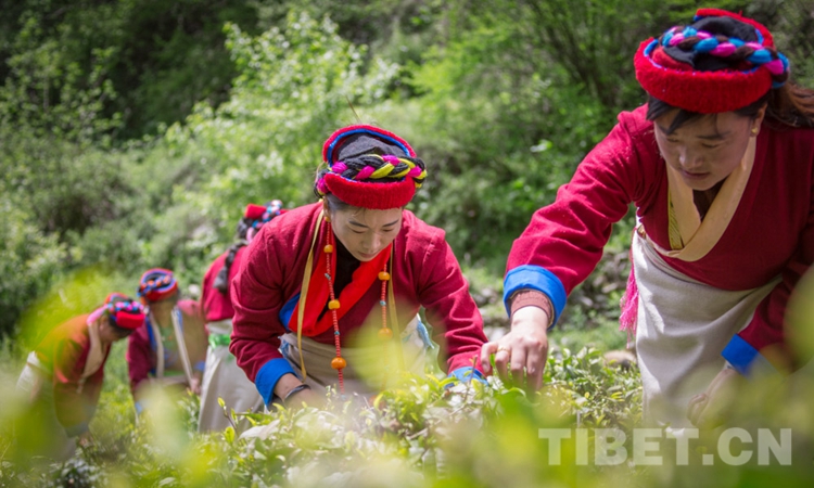 圖為勒鄉(xiāng)村民正在錯那縣勒門巴民族鄉(xiāng)茶葉農(nóng)牧民專業(yè)合作社內(nèi)采摘茶葉 攝影:趙耀