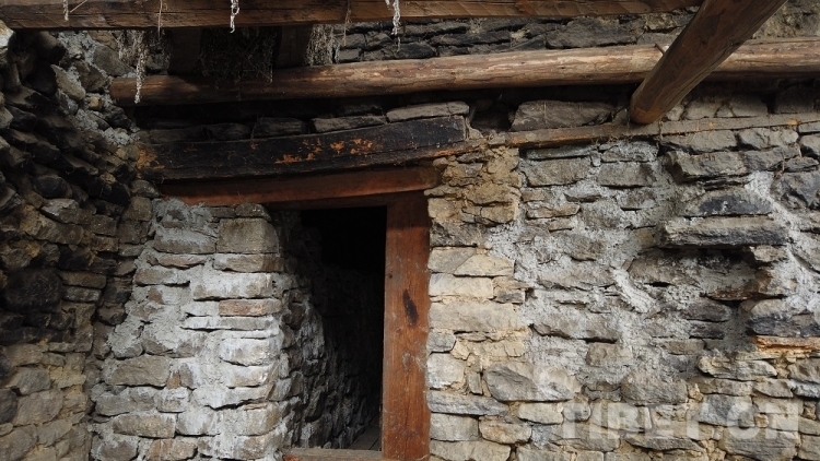 門(mén)巴族碉樓除了墻是用石塊砌成的之外,幾乎全是木料結(jié)構(gòu),接搭的地方用樺木而不是用釘,七八米高的門(mén)巴族住房可以保持百年不壞,由此可見(jiàn)門(mén)巴族原始而高超的砌筑技術(shù)。圖為碉樓內(nèi)部的木質(zhì)接搭結(jié)構(gòu)