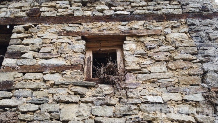 碉樓房屋樓層高,窗戶很小,有極好的防御功能。圖為碉樓外墻的瞭望窗
