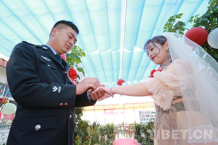 “今天能在警營(yíng)里完成婚禮,非常的激動(dòng)。結(jié)婚是女人一生中最幸福的時(shí)刻,非常感謝單位的領(lǐng)導(dǎo)能給我們這樣的機(jī)會(huì),讓我倆一起度過人生中最幸福的時(shí)刻。這次的婚禮非常的有意義,將是我們一生中最寶貴的回憶,警營(yíng)讓我成為最美麗的新娘?!毙履锿鯊溺鴾I激動(dòng)地說。(中國(guó)西藏網(wǎng) 通訊員/張拴根 記者/王佳豪)