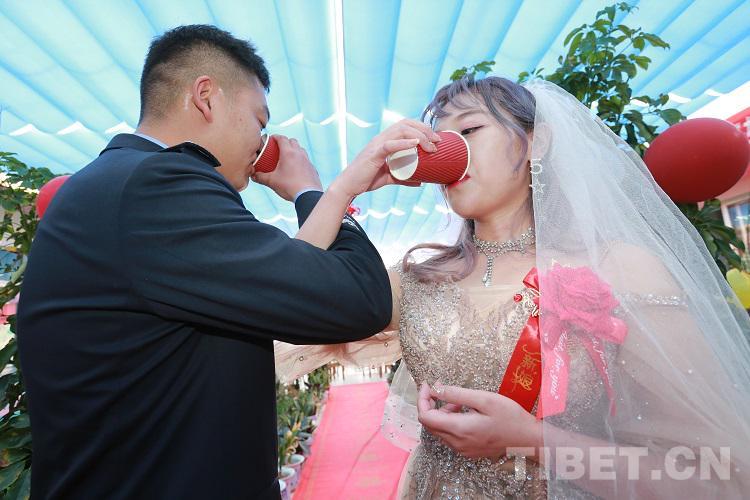 沒有鋪張豪華的迎親車隊(duì),沒有山珍海味的結(jié)婚宴席,大家在陽關(guān)房里鋪上紅地毯、掛上彩色氣球,用鮮花和彩帶巧手裝點(diǎn)禮堂。繽紛的喜字掛在墻上,讓平日里莊嚴(yán)肅穆的營(yíng)區(qū)變成了另一番景象,讓新娘感受到了只有警嫂才有的至高禮遇。藏青藍(lán)與婚紗白交融,浪漫與忠誠(chéng)在海拔4300米演繹著動(dòng)人的交響曲。