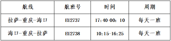 圖為拉薩?重慶???诤骄€時間表,具體以航班飛行實際時間為準