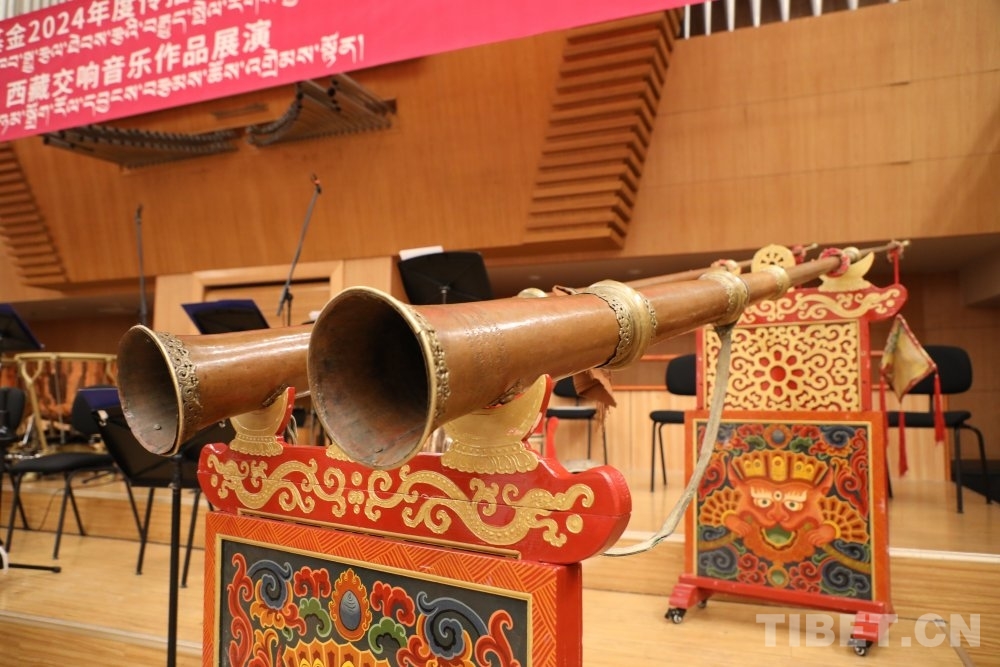 演出展示了合奏、協(xié)奏、獨奏等多種演奏形式,還加入了西藏傳統(tǒng)樂器演奏,如扎木念、藏大號等藏族傳統(tǒng)樂器,依托原創(chuàng)音樂、紅色音樂,既保留了西藏音樂的風格,又融入了現(xiàn)代音樂的元素,展現(xiàn)了西藏音樂的多元性和創(chuàng)新性以及交響樂的豐富表現(xiàn)力。