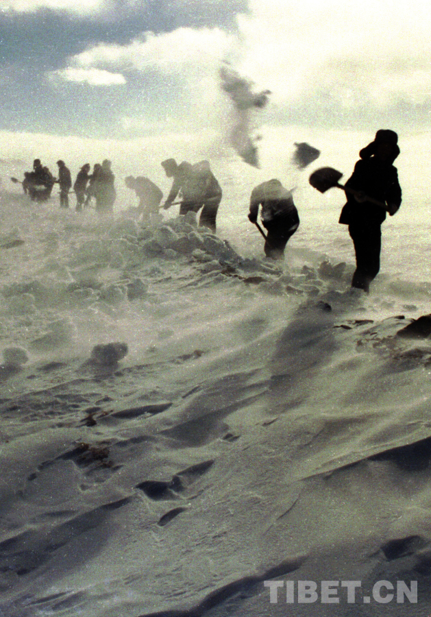 《109道班工人在風(fēng)雪中鏟雪開路》 作者:唐召明