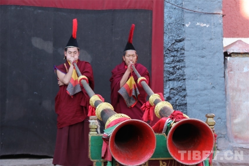 圖為從各處迎請出的大黑天等神像在薩迦寺院內(nèi)廣場匯合,跳金剛舞 攝影:王妍丹