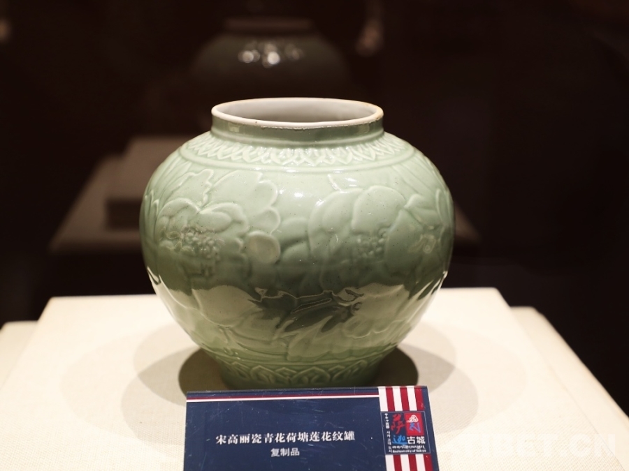 圖為宋高麗瓷青花荷塘花紋罐(復制品) 攝影:王茜