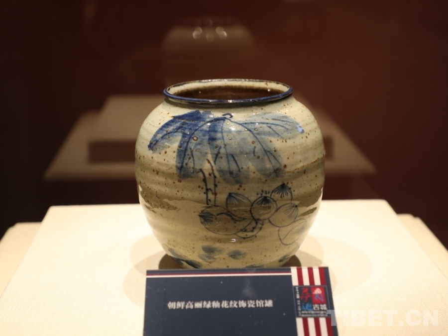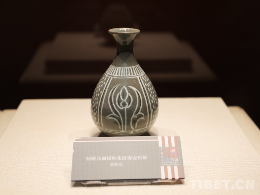圖為朝鮮高麗綠釉花紋飾瓷館罐(復制品) 攝影:王茜