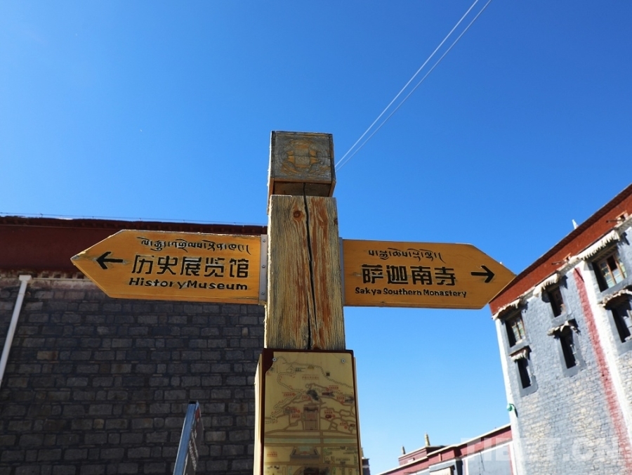 西藏薩迦歷史文化展覽館距離薩迦寺不足百米。圖為路標 攝影:王茜