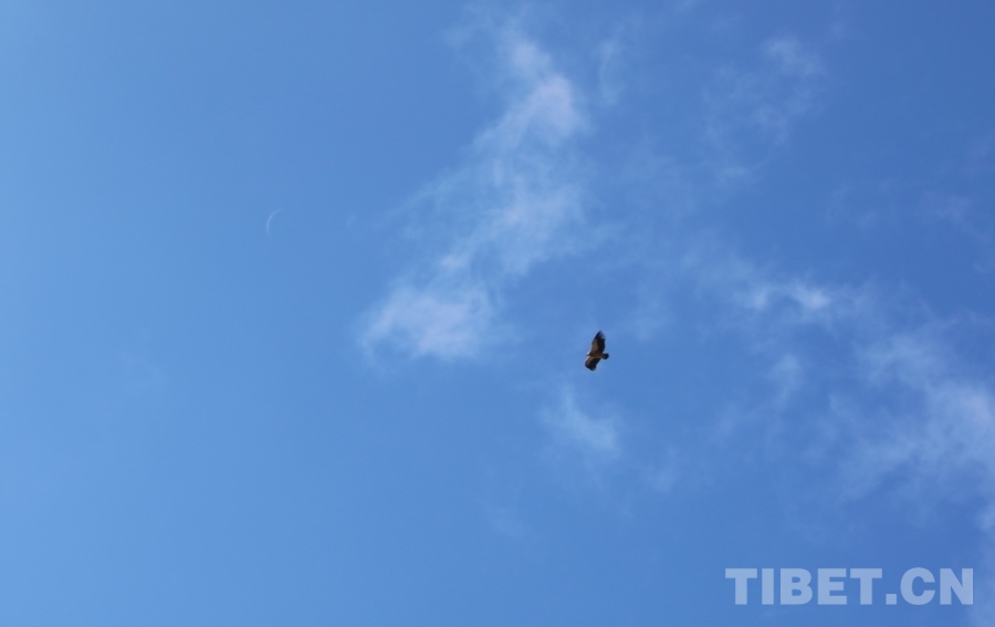 圖為藍(lán)天上飛翔的鷹 攝影:王茜