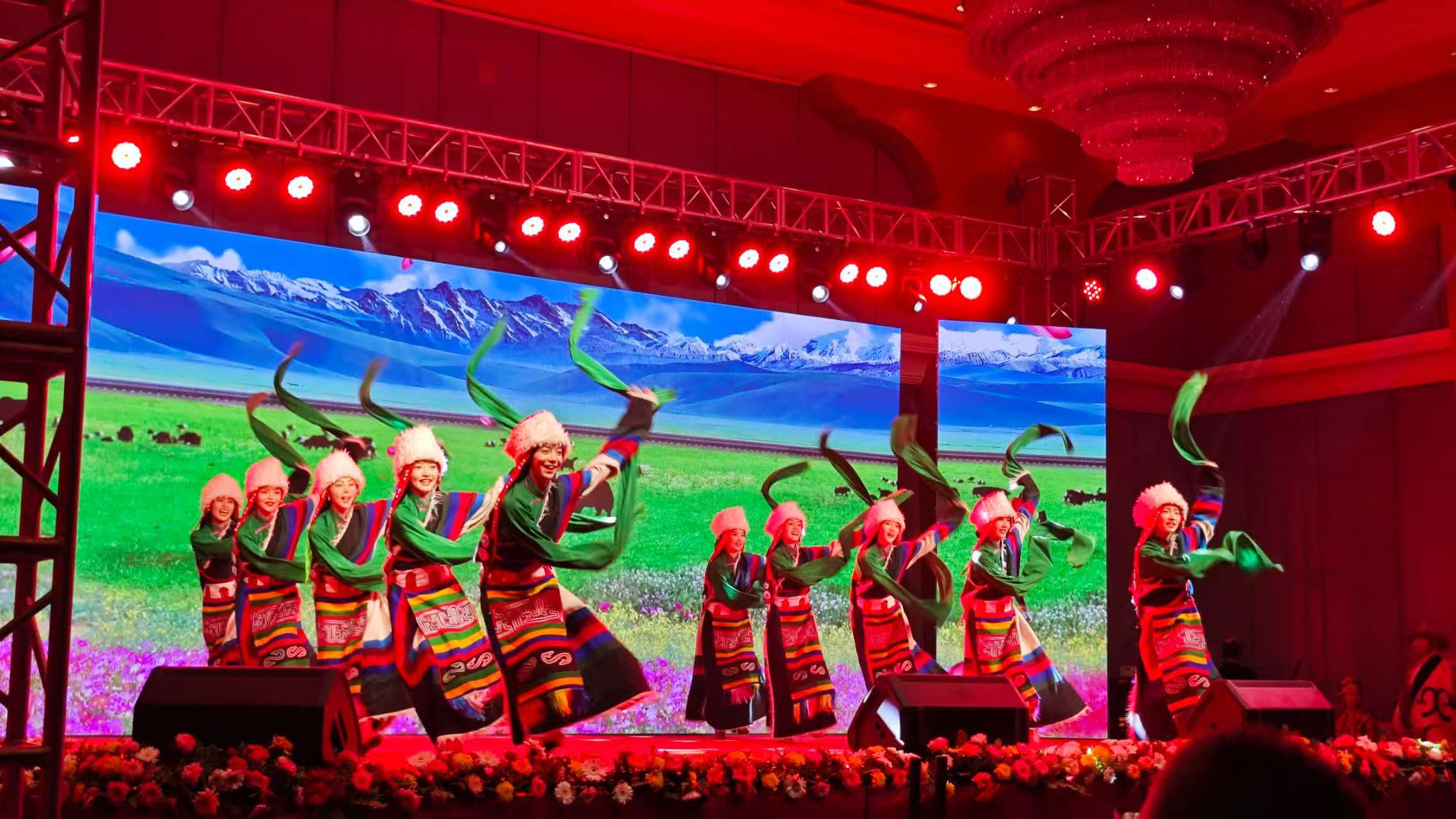 中國西藏山南市藝術(shù)團(tuán)帶來了豐富而精彩的歌舞表演。開場以藏戲《歡騰雅礱》點燃節(jié)日氣氛,獨(dú)唱《扎西德勒》《歡騰的弦子》以及尼泊爾籍藏族女歌者瓊英卓瑪演唱《花的眼睛》,贏得觀眾陣陣掌聲,《祥瑞勒布》《織夢》《藏南鼓舞》《班戈諧欽》《弦鼓情緣》《高原舞步》等舞蹈表演體現(xiàn)了西藏各族群眾豐富的精神文化生活,展現(xiàn)了西藏日新月異的發(fā)展變化和迷人的民族風(fēng)情,在場藏胞紛紛為精彩演出鼓掌喝彩。
