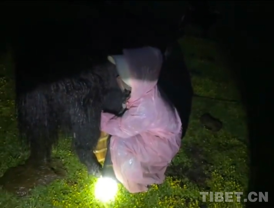 到了牛圈里,我發(fā)現(xiàn)大部分的牦牛都把腦袋斜靠在自己的肚子旁,閉著眼睛睡覺(jué)呢。我想很多人都沒(méi)見(jiàn)過(guò)牦牛睡覺(jué)的畫(huà)面吧?它們睡覺(jué)不是站著,而是躺下后前后腿全部收緊,把自己裹成一團(tuán),頭不是往前伸著,而是斜著貼緊自己的身體。過(guò)了一會(huì)兒,似乎是小牛犢們意識(shí)到了自己馬上就可以喝到媽媽的奶了,牛圈里開(kāi)始傳來(lái)此起彼伏的叫聲;另一邊的牛媽媽們也開(kāi)始作出回應(yīng)。雖然在我聽(tīng)來(lái)都是同一種叫聲,但在它們那兒似乎有著完全不一樣的意義。這是屬于它們自己的“加密語(yǔ)”。就這樣,在一聲聲“哞——哞——”的叫聲中,我們開(kāi)始了今天的工作。