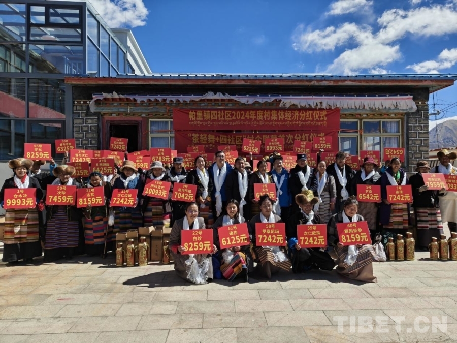 2月19日,帕里鎮(zhèn)四社區(qū)迎來了2024年度分紅儀式。本次合作社、村集體、村企聯(lián)營分紅資金共有41.6263萬元,其中包括四川蓬安茉上花開餐飲管理有限公司的4萬元分紅資金,這是四社區(qū)集體經(jīng)濟成立以來首次得到企業(yè)分紅資金,讓四社區(qū)63戶集體經(jīng)濟成員單位家庭每戶增收635元?!皬暮炗唴f(xié)議到實現(xiàn)分紅僅過去80天,這極大鼓舞了四社區(qū)農(nóng)牧民群眾對村企聯(lián)營新模式的信心,堅定了群眾走村企聯(lián)營新模式的決心?!瘪v村工作隊隊長說。