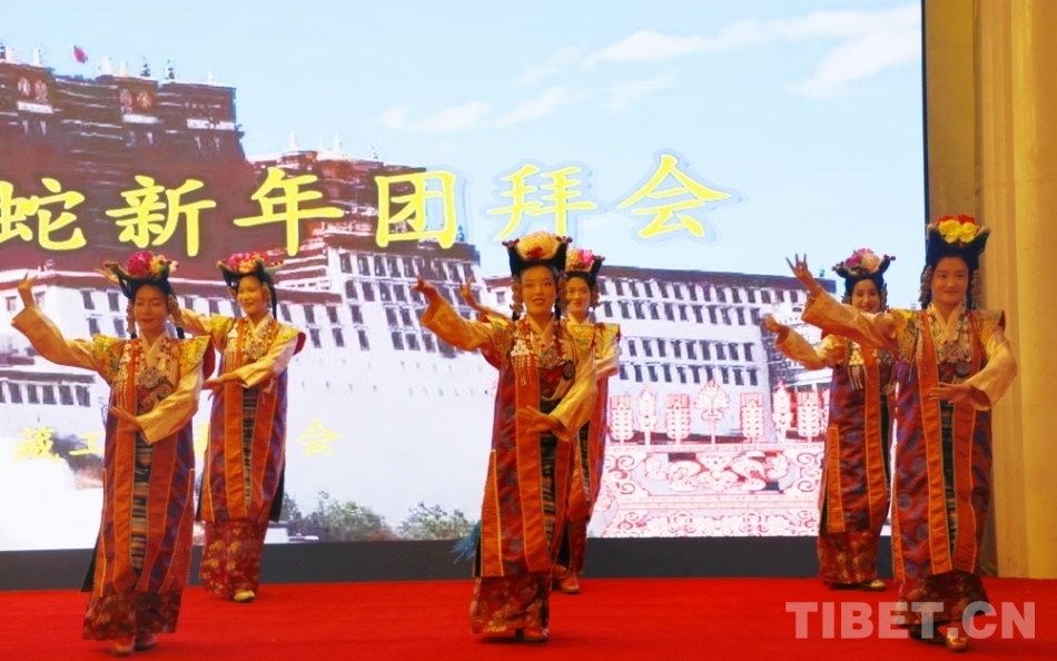 隨著拉薩城關(guān)區(qū)娘熱民間藝術(shù)團(tuán)的歌舞表演開始,《祝?!窐仿曈茡P(yáng),團(tuán)拜會(huì)正式拉開帷幕。“老班長”葉鵬穿上自己的綠軍裝重新演繹民族團(tuán)結(jié)與軍民深情的經(jīng)典歌舞《洗衣歌》;青少年學(xué)生們和著優(yōu)美的旋律,以歡快的舞步跳起《崗巴拉姆》,點(diǎn)燃了現(xiàn)場(chǎng)氣氛;一級(jí)演員劉媛媛演唱的《五星紅旗》《國家》飽含深情,北京首都軍之魂合唱藝術(shù)團(tuán)的大合唱《共筑中國夢(mèng)》《走向復(fù)興》慷慨激昂,表達(dá)了大家對(duì)祖國的熱愛……還有悠揚(yáng)的扎木念表演、男聲獨(dú)唱等節(jié)目豐富精彩。大家在歡聲笑語中共同感受著節(jié)日的喜悅,共同祝愿西藏在新的一年里再創(chuàng)輝煌,共祝西藏各族人民幸福安康,羅薩扎西德勒。(中國西藏網(wǎng) 記者/王茜 實(shí)習(xí)生/扎西央措)