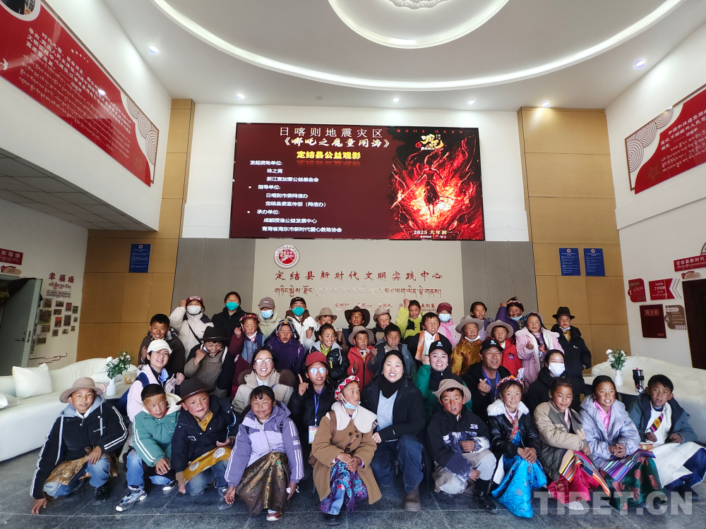 圖為“壹加壹·新時(shí)代愛(ài)心”兒童之家?guī)ьI(lǐng)楚卡村兒童觀看《哪吒2》