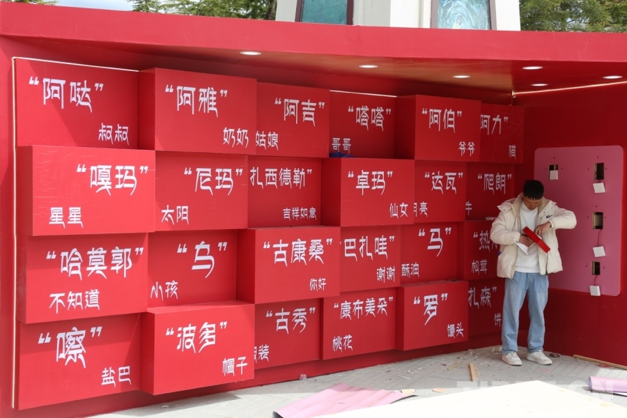 開幕式主會場經(jīng)過近一周加班加點(diǎn)的搭建,已可見雛形,開幕式主會場舞臺以桃花花瓣形狀設(shè)計LED背景屏與舞臺,會場周邊也做了諸多氛圍設(shè)計,包括各縣區(qū)特色展房與展臺。