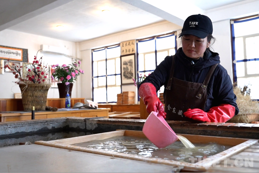 在政府和工匠們不懈地保護(hù)發(fā)揚(yáng)下,金東藏紙重?zé)ㄉ鷻C(jī)。2013年,“金東藏紙制造技藝”被納入自治區(qū)級(jí)非物質(zhì)文化遺產(chǎn)名錄,朗縣投入100萬(wàn)元用于金東藏紙改擴(kuò)建項(xiàng)目;2017年,金東藏紙獲評(píng)中國(guó)特色旅游商品,深受?chē)?guó)內(nèi)外人士喜愛(ài);近年來(lái),金東藏紙制造技藝已基本恢復(fù)工藝流程,2024年政府再次投入資金20萬(wàn)用以購(gòu)買(mǎi)造紙?jiān)O(shè)備。