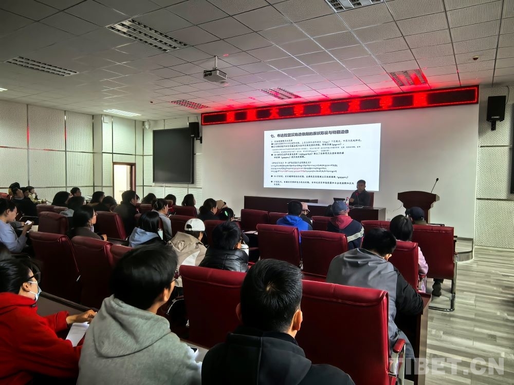 圖為布達拉宮文物管理處文物研究室班旦次仁老師在西藏大學藝術學院講座現場 攝影:王淑