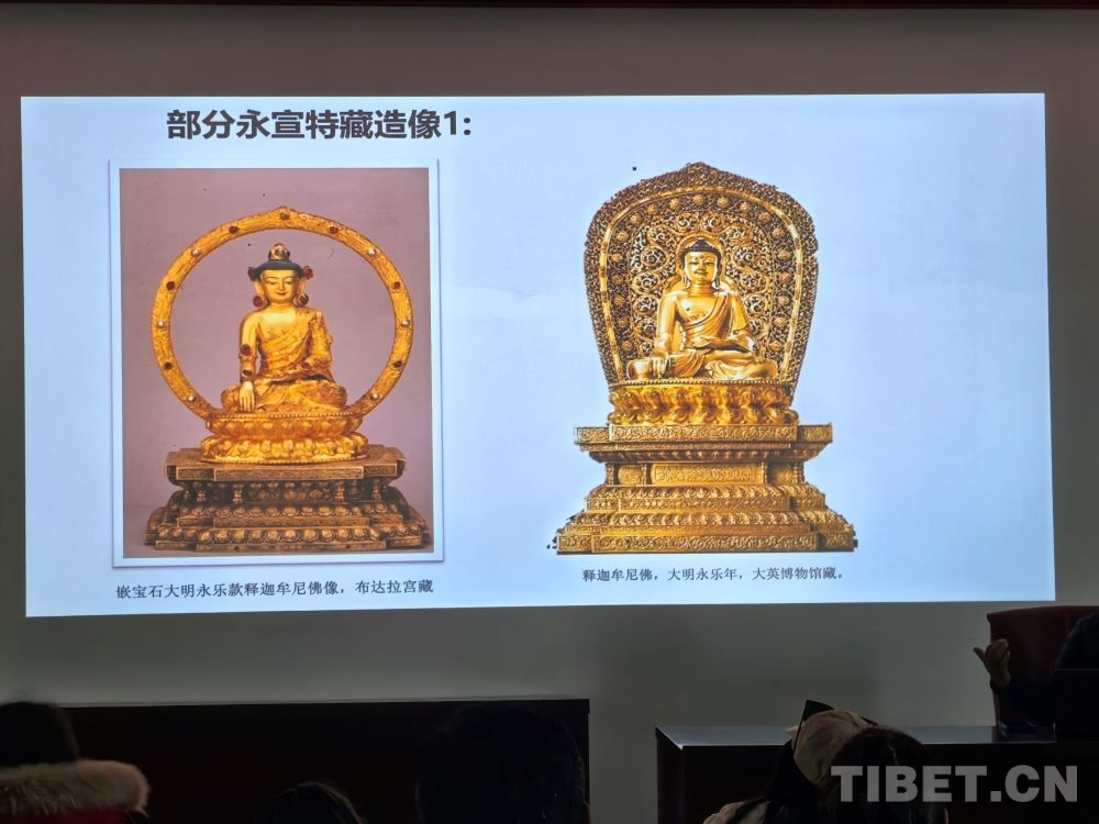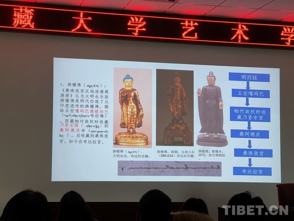 5月8日,在西藏大學藝術學院內,一場題為《布達拉宮館藏大明永宣款造像相關問題考察——兼談“漢地造像殿”的復原陳設研究》的講座吸引了眾多學術愛好者。布達拉宮文物管理處文物研究室班旦次仁老師以大量西藏大明永宣款造像為案例,向在場聽眾介紹了這一時期的佛像如何以媒介的形式增強各民族間的感情。