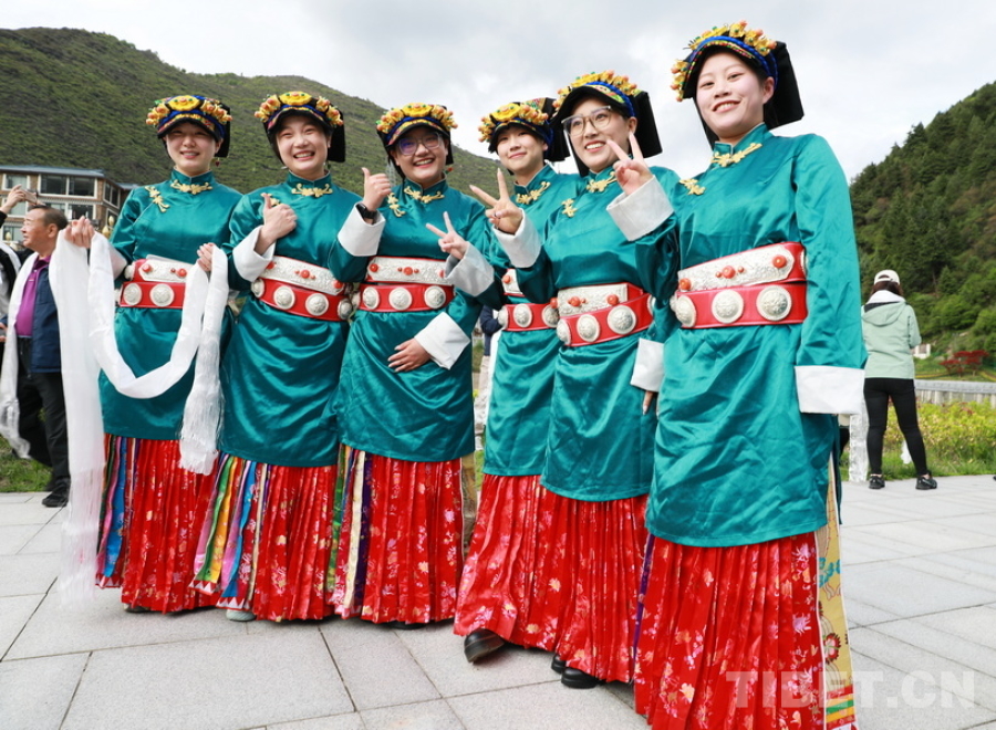 圖為身著嘉絨藏族盛裝的四川省阿壩州女孩們迎接“同心·共鑄中國(guó)心”大型公益活動(dòng)醫(yī)務(wù)志愿者們的到來(lái) 攝影:劉莉