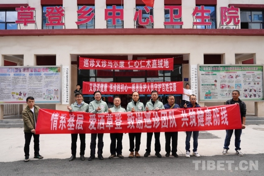 圖為草登鄉(xiāng)義診點(diǎn)的醫(yī)療專家們合影 攝影:喇應(yīng)強(qiáng)
