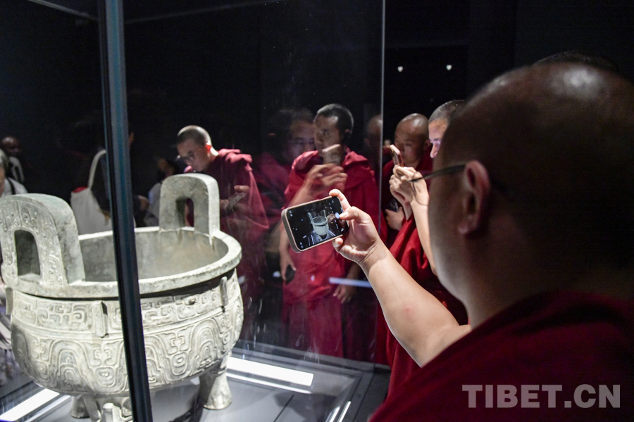 圖為西藏佛學(xué)院師生在上海博物館參觀西周大克鼎,了解西周文明 攝影:趙振宇