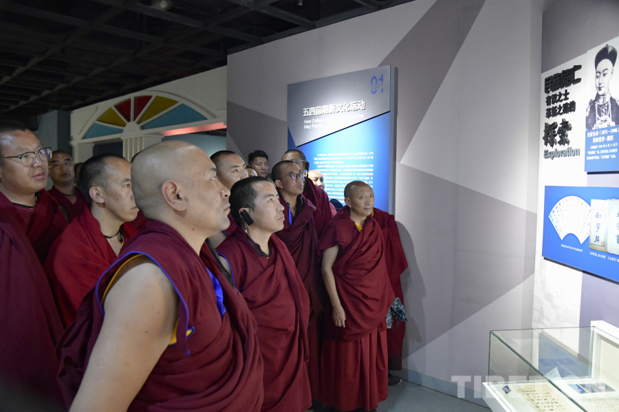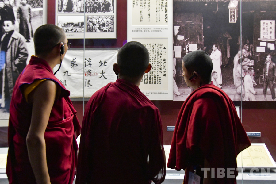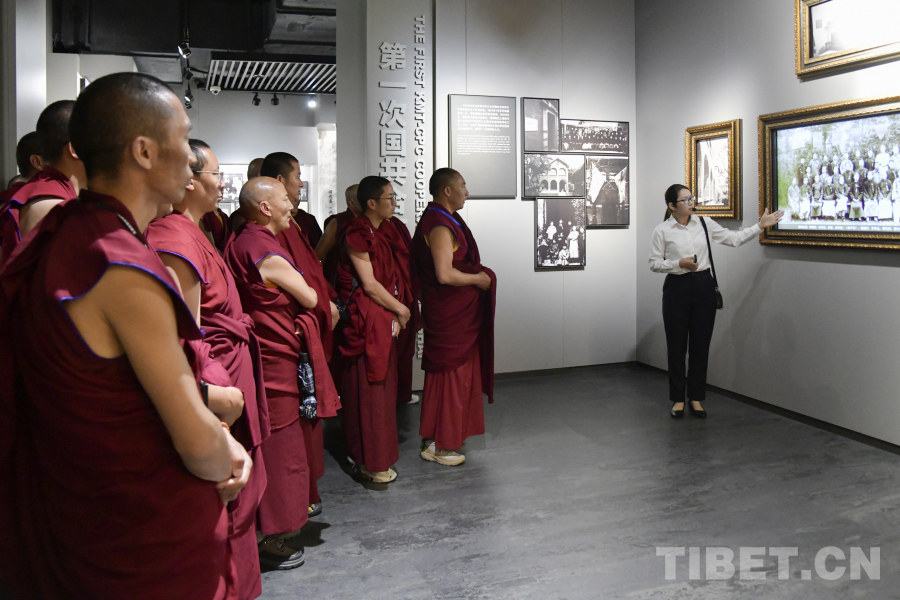 圖為西藏佛學(xué)院師生在嘉興五四文化博物館參觀了解中國(guó)近代化探索過(guò)程 攝影:趙振宇