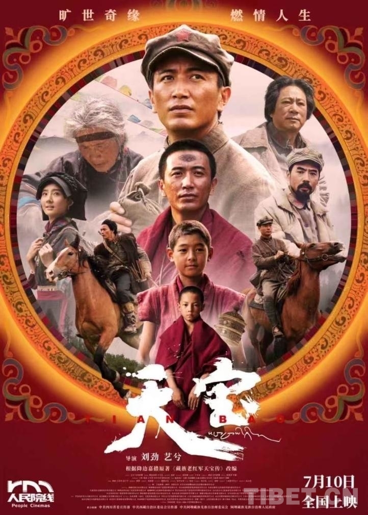 電影《天寶》改編自作家降邊嘉措的傳記文學作品《藏族老紅軍天寶傳》,影片以天寶(原名桑吉悅希)從少年到中年時代的真實經歷作為創(chuàng)作素材,全景式講述了桑吉悅希從僧人,到參加紅軍、三過草地,在延安中央黨校民族班學習期間被毛澤東主席改名為“天寶”,后又參加和平解放西藏等,歷經千錘百煉和血與火的洗禮,最終成為中國共產黨的優(yōu)秀黨員、忠誠的共產主義戰(zhàn)士的革命英雄事跡。